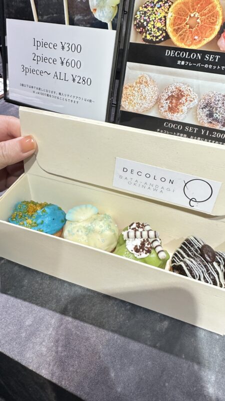 Located within Senagajima Umikaji Terrace, De: (Decoron) is a specialty shop dedicated to “decorated” sata andagi. These bite-sized Okinawan doughnuts are beautifully adorned like pieces of jewelry, and simply gazing into the display case is enough to lift your spirits.
