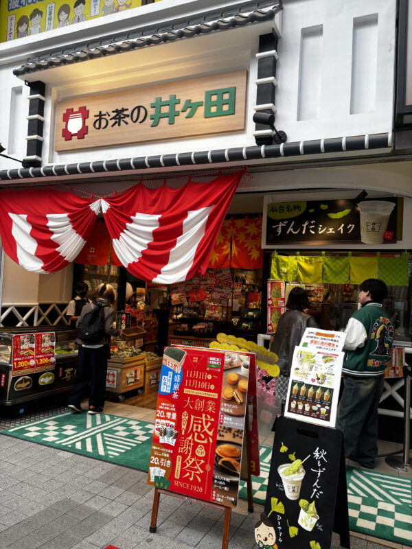 創業100年を超える老舗「お茶の井ヶ田 仙台中央本店」は、仙台の“甘味文化”を語るうえで欠かせない存在です。店内では厳選された茶葉のほか、お菓子や茶道具を販売。名物の「喜久福」や「どら茶ん」は、仙台土産の定番として高い人気を誇ります。そして近年、新たな仙台名物として注目を集めているのが「ずんだシェイク」。
